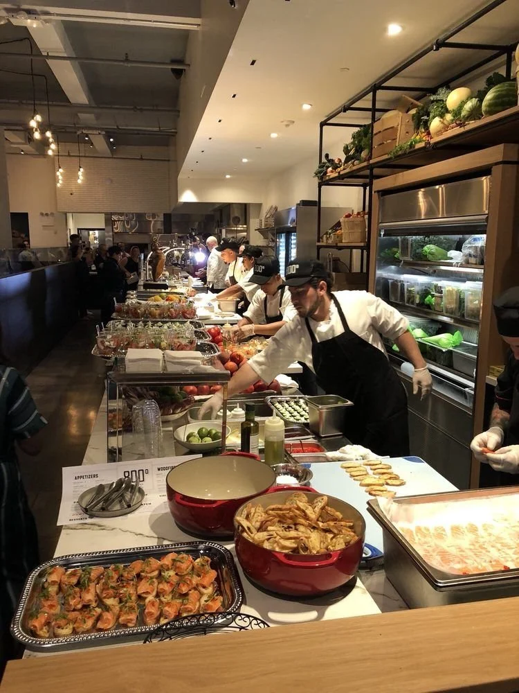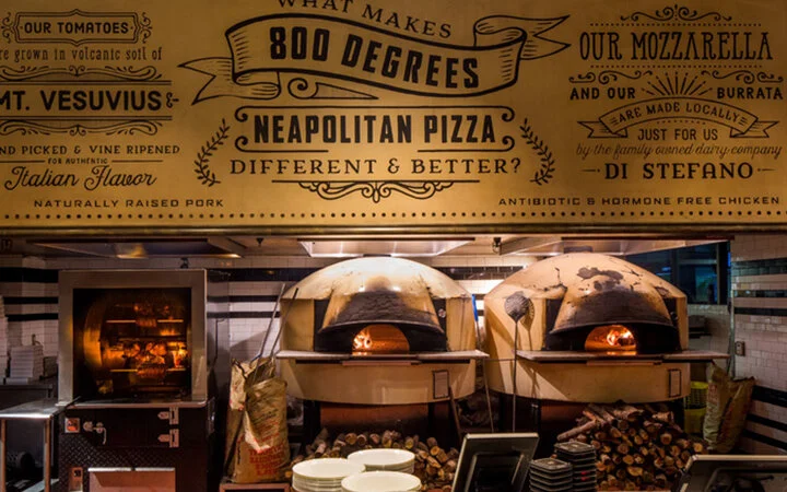 Bright, contemporary kitchen for Italian appetizers & wood-fired pizza, and rotisserie meats.